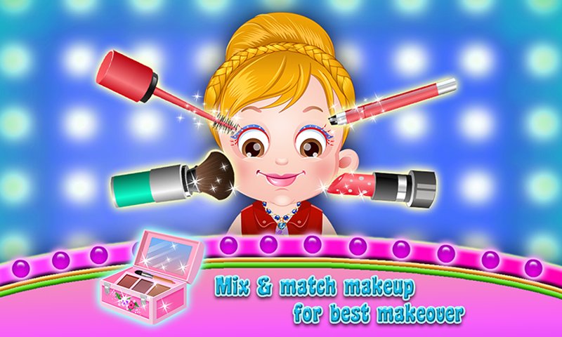 化妆时间到了! - 提供令人惊叹的化妆选择。选择您喜欢的闪亮彩妆色调,涂抹在 Baby Hazel 上。