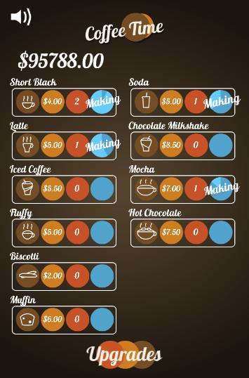 为您提供了一定数量的现金来创办自己的咖啡店。然后,您继续为商店购买咖啡机和其他升级。当您逐步进行游戏时,您将获得更高的价格,更快的服务,自动化的劳动力,以帮助您保持需求以及许多其他选择。