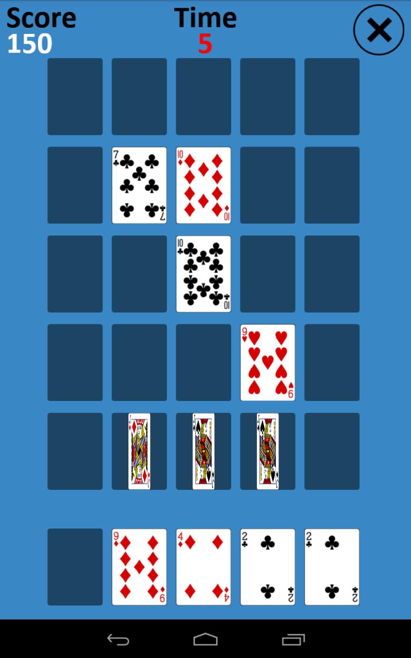尝试使尽可能多的组合和三张卡通过拖动底卡和掉落来得分