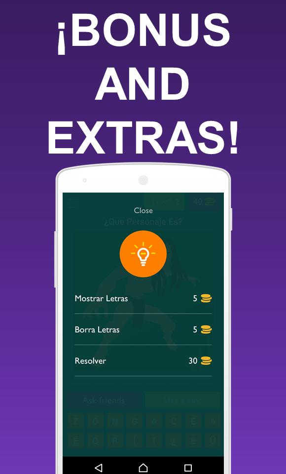 在图像下面,将有一系列字母,您必须构成图像中显示的字符的名称,如果获得名称,您将获得硬币的奖励并访问下一个级别。