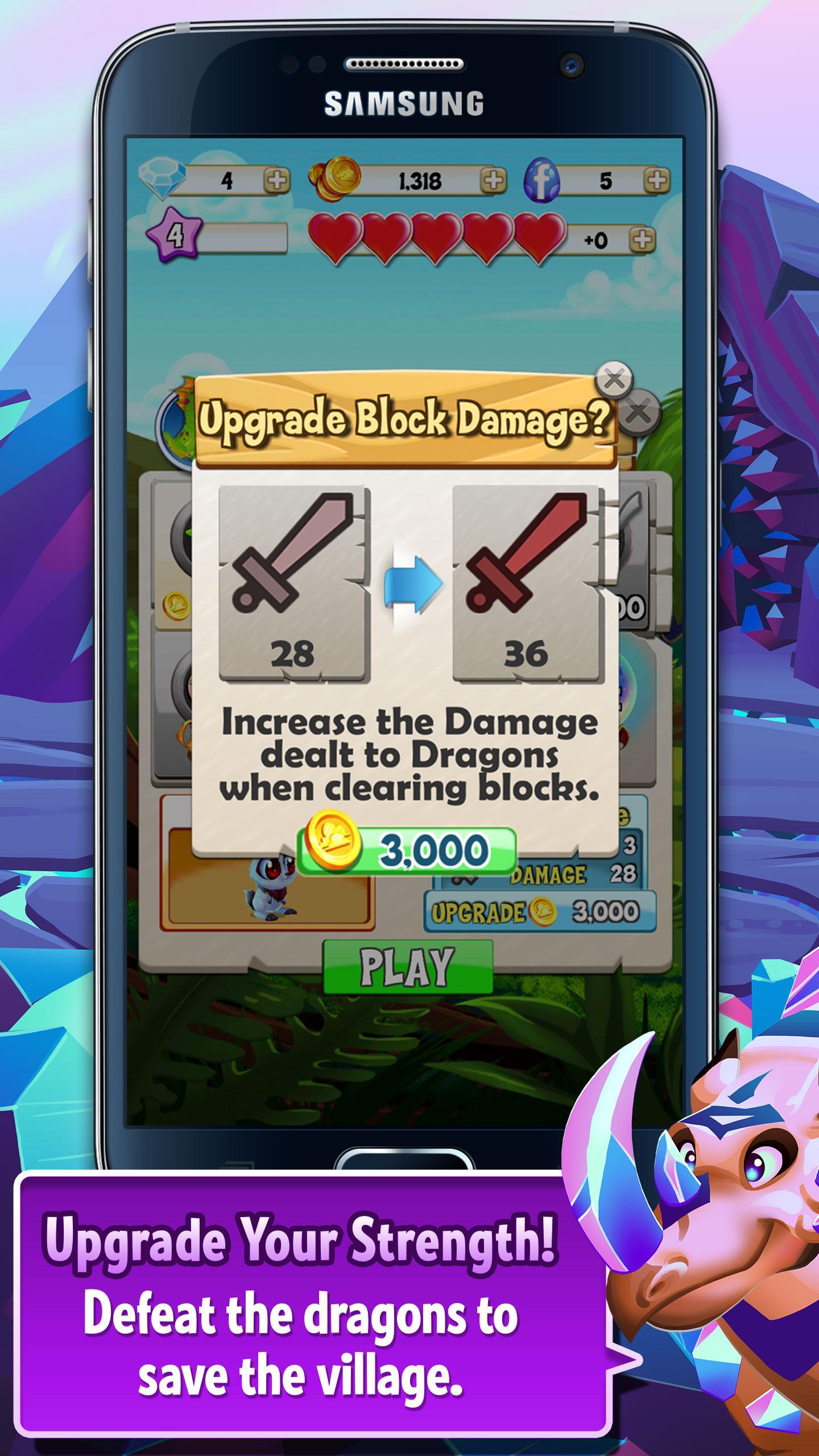 在60秒的闪电战中与时钟比赛,以在时间用完之前将尽可能多的块连接到尽可能多的块!它是超级快速,超级魅力和大型兴奋的!只需连接三个或更多块即可从董事会中引爆它们,以攻击邪恶的龙并将您的得分飙升!