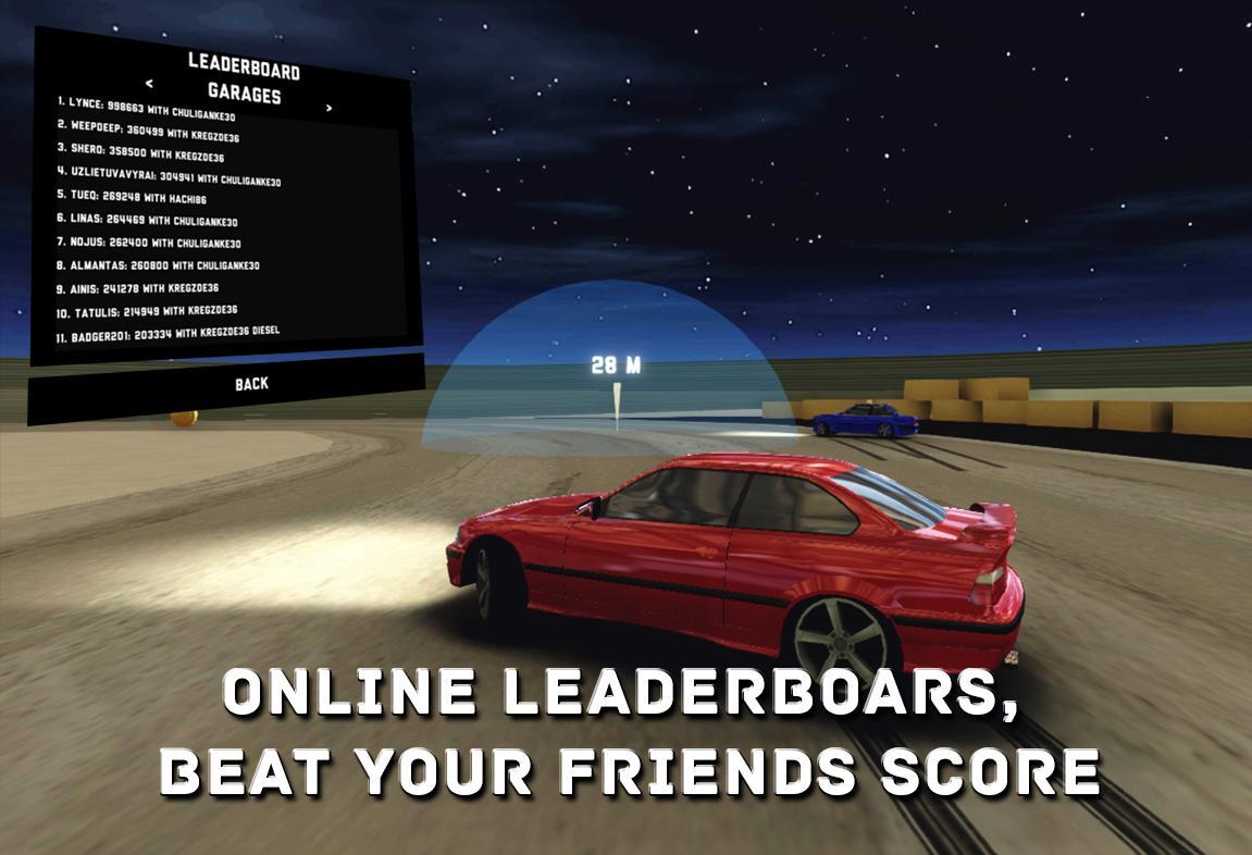 您通过漂移得分。得分最多,并将您的分数提交给排行榜。与朋友一起玩,并通过首先完成圈速并得分最高,以击败他们的得分。