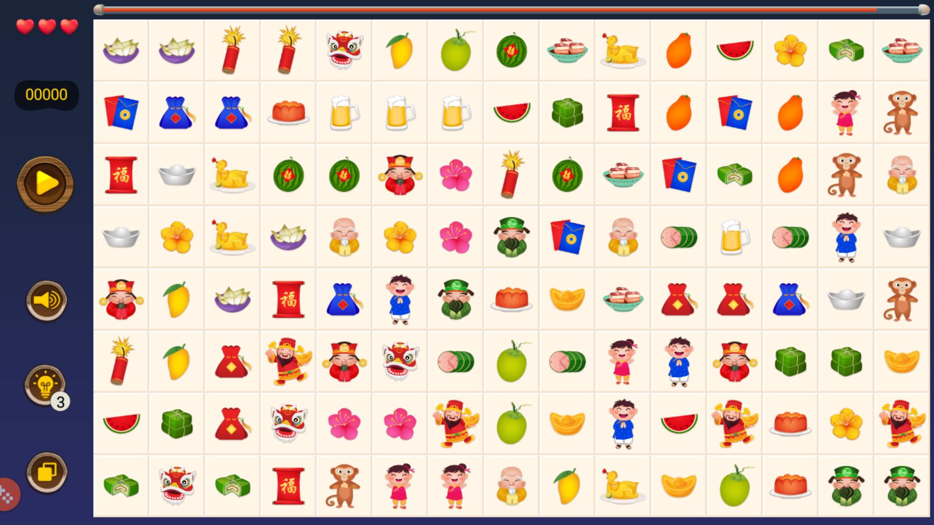 +您必须找到两个相同的图标图块,这些图块最多可以连接到3个直线,其中连接线路路径上没有其他瓷砖。