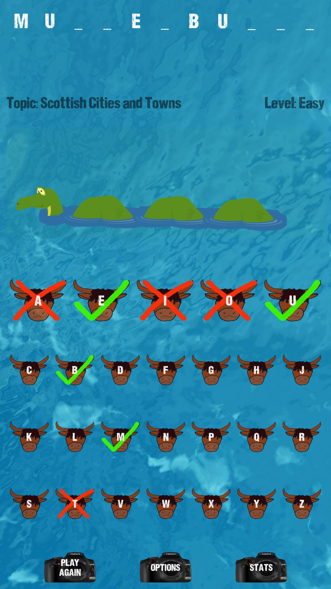 我们很想听听您对拥有苏格兰主题的单词游戏的看法。如果您对其他游戏有建议,或者希望我们将其他类别添加到Scottish Hangman ,请联系。