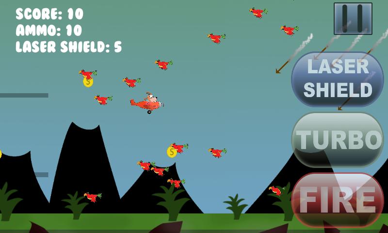 收集硬币并射击鹦鹉,同时进入终点线。避免将Sniffer的飞机撞向山脉或鹦鹉。