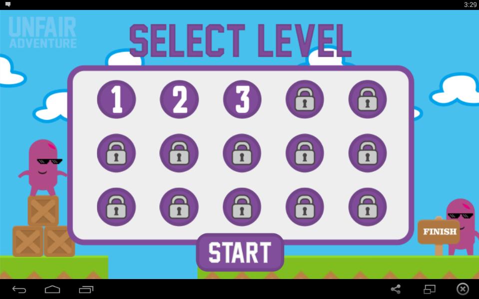 Unfair Adventure是一款冒险游戏,您必须在每个级别上进步。但是要小心,所有级别都充满了各种陷阱。在2D宇宙中控制角色,并试图击败陷阱。