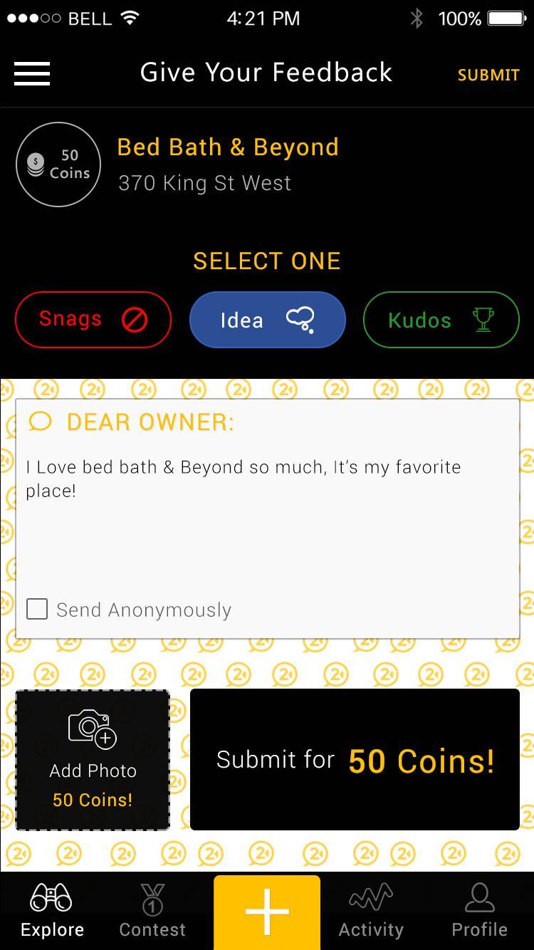 有史以來第一個告訴企業真相的應用程序。一個基於位置的移動匿名消息應用程序,可直接向附近的任何企業提供帶有障礙,想法和榮譽的企業以及整體評級和圖像。