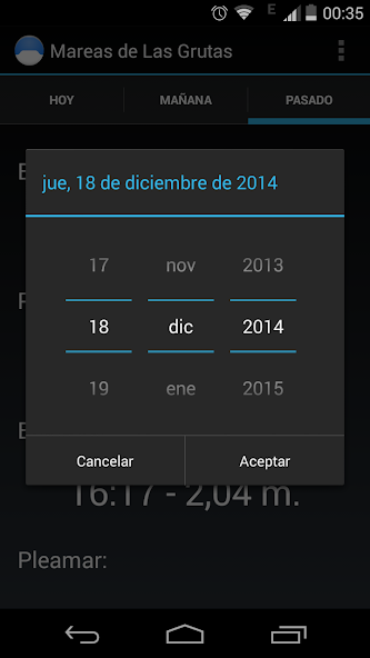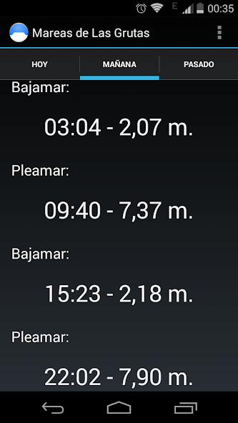 此應用程序使您可以看到與Las Grutas Spa相對應的高潮 /低潮時間表,並具有各自的高度信息。它具有海軍水文服務的數據,直到2019年12月31日。