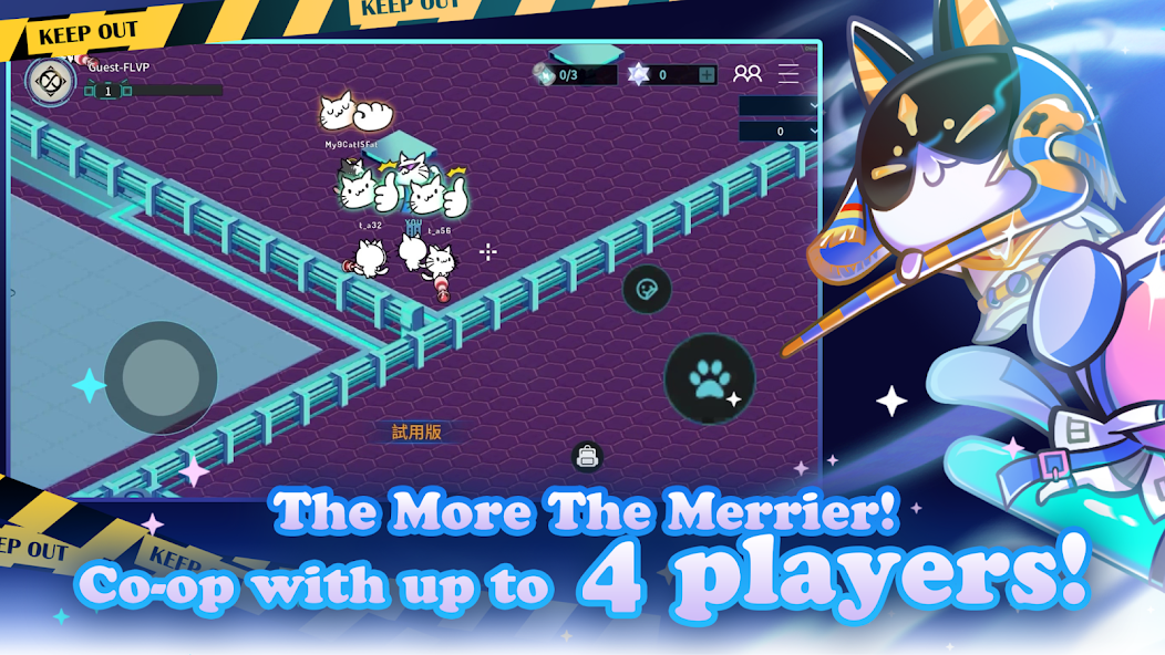 通過戰術團隊合作和purr-fect時機克服狡猾的敵人和巨大的老闆。