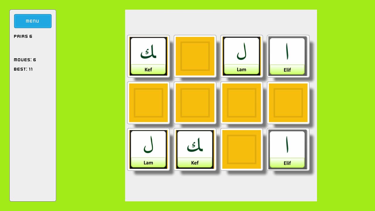 您可以通過打開與找到夫妻的遊戲相同的字母來贏得遊戲。