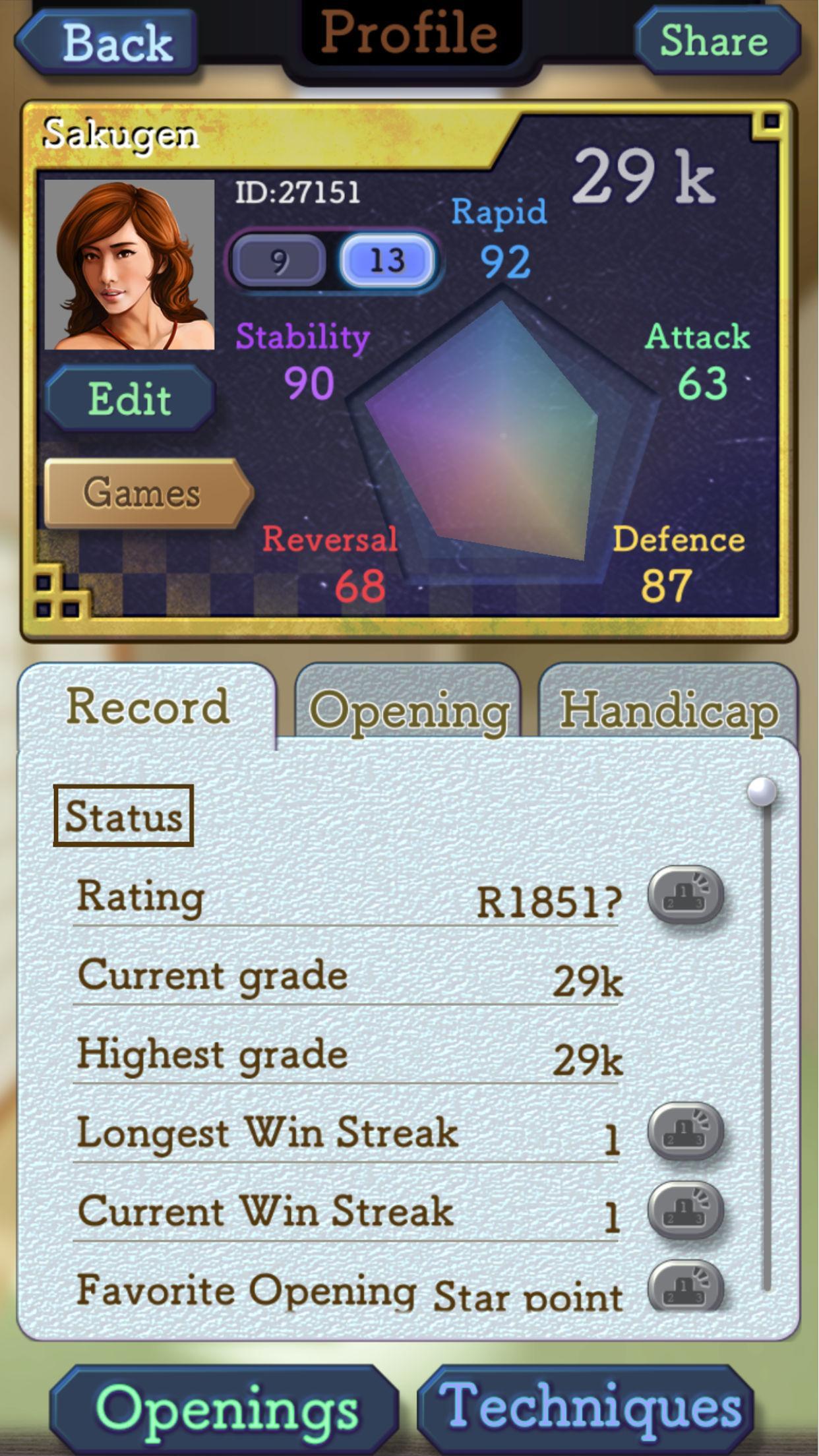 - 播放器的級別由流行的Dan-Kyu系統以及更統計上準確的ELO評分系統評估。