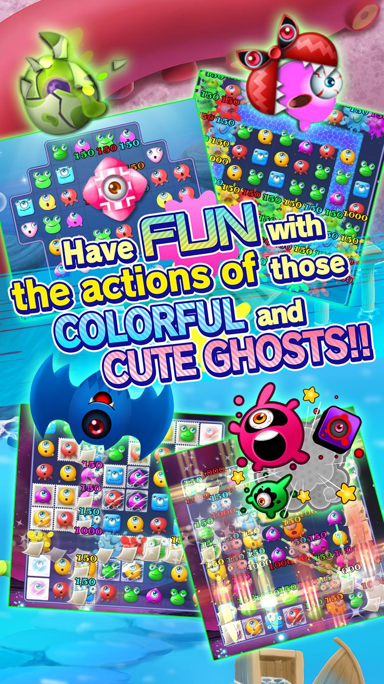 簡單的“匹配三個”難題,您可以通過連接三組來消除可愛的鬼魂。