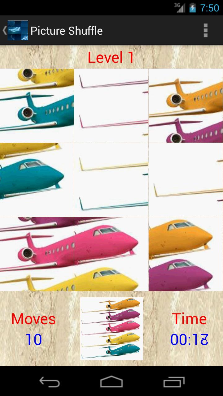 Picture Shuffle是一個益智遊戲。遊戲的目的是解開圖像。它有不同的級別。每個級別都將為您提供10個動作,以解開圖像。如果您以少於10的動作做到這一點,則其餘的動作將帶到一個新的水平。去數字!!!