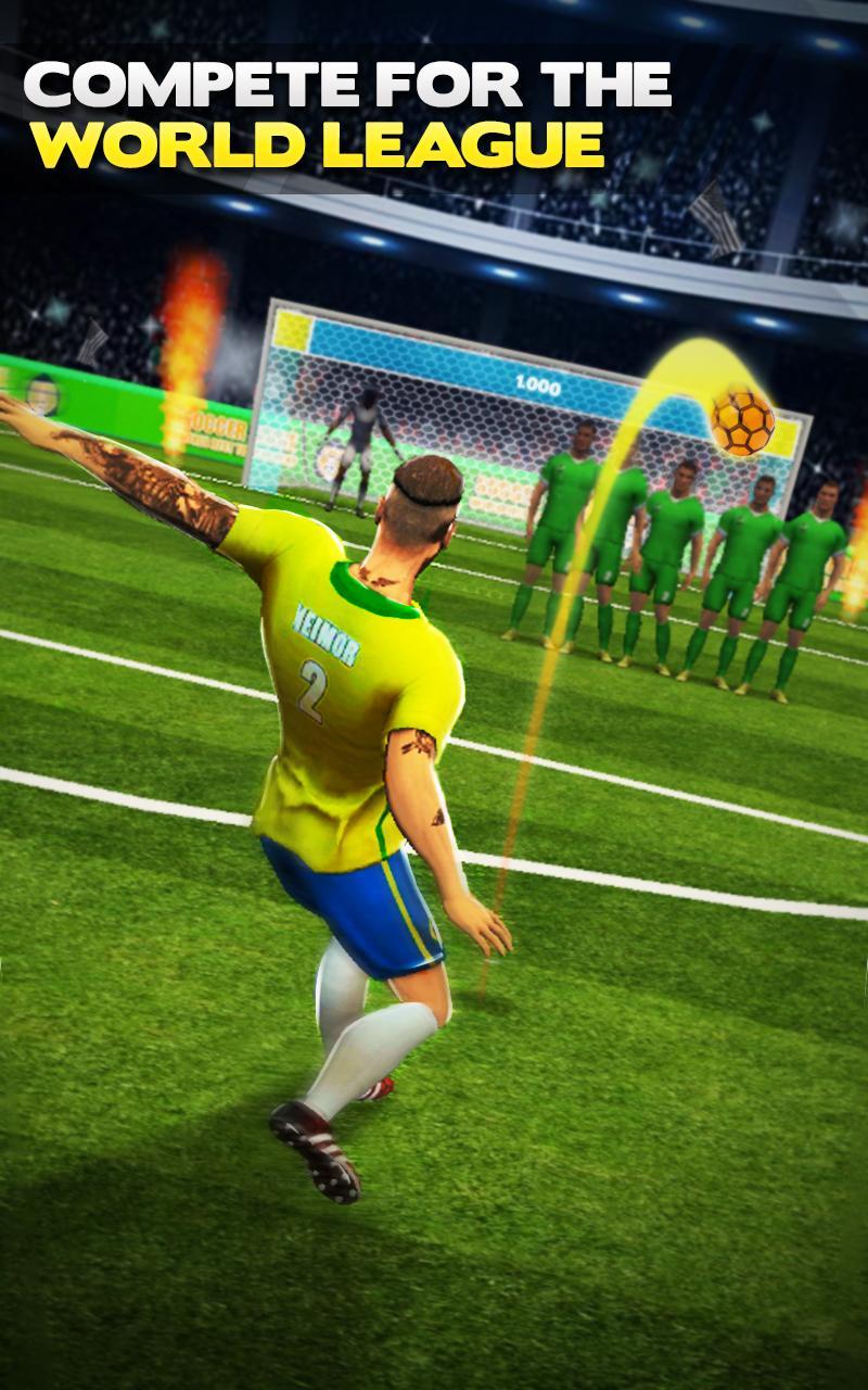這是足球比賽和守門員比賽中最好的。罷工足球已經成為這場任意球足球比賽。享受任意球,點球拍攝,與您的足球英雄贏得對峙,與隊友成為最好的火車,並通過輕彈射擊贏得2018年足球世界聯賽。足球世界聯賽就在這裡,這是最佳的自選遊戲。與您的足球運動員直接進入目標。歡迎來到星空聯盟。