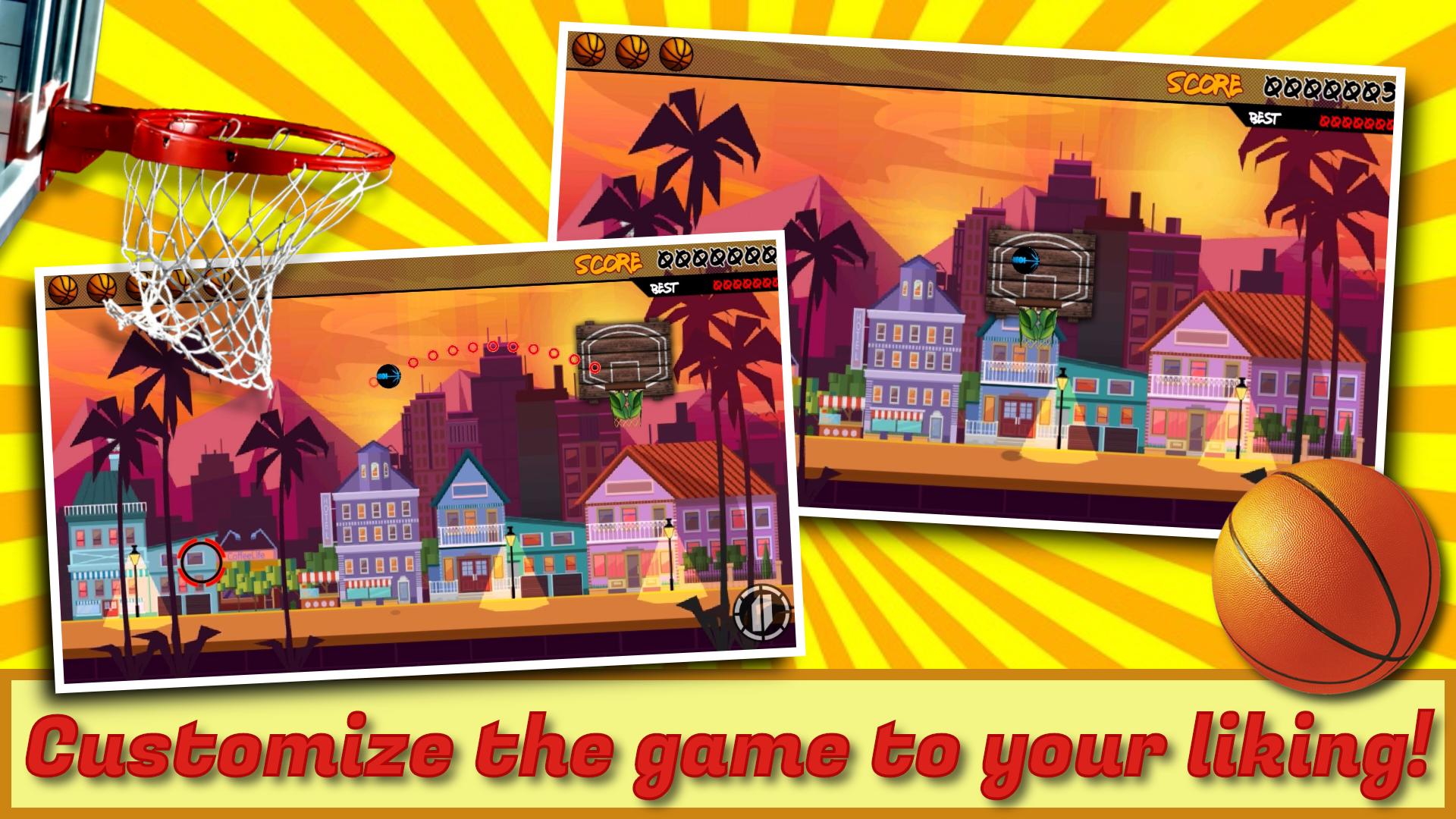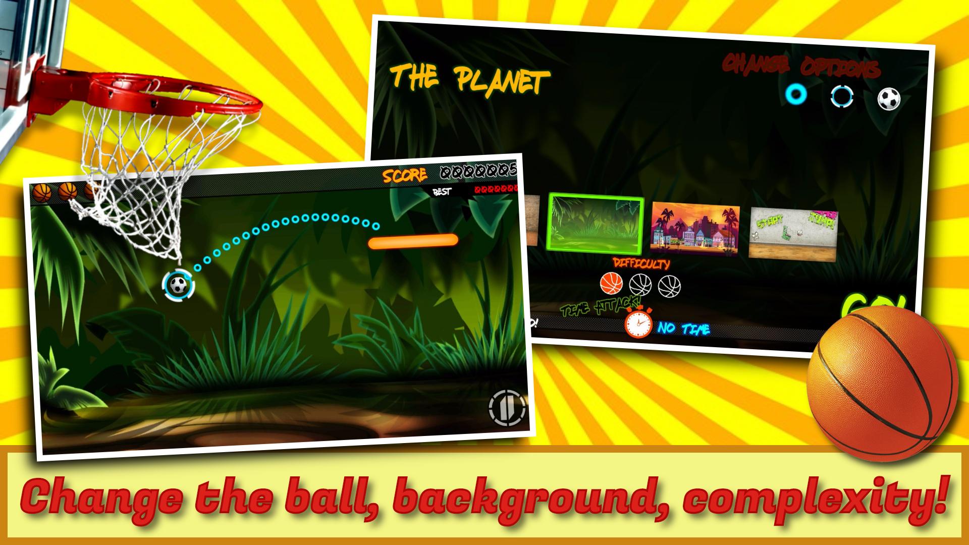 如果您想將球扔進籃子,那麼這個遊戲將特別適合您!您不僅可以扔籃球,還可以扔足球甚至棒球!進入設置菜單,然後選擇最喜歡的球!另外,您可以選擇遊戲的背景,難度級別,設置計時器,然後選擇視線的顏色。玩是因為您最喜歡!每個平台遊戲都具有一定的複雜性,可以節省您的最佳分數。您總是可以來超越自己的分數!